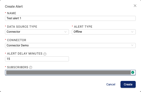 | Offline | Notifications for Offline Connectors. When a Connector is in RUNNING or IDLE status, it will send heartbeats to the TDP to signify that it is able to communicate with the platform. A Connector is considered offline if it's not disabled and the TDP stops receiving heartbeats from it. |