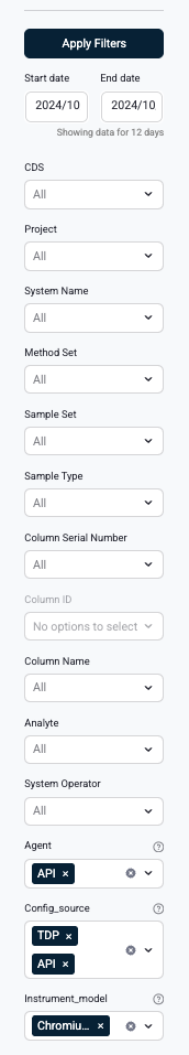 The following are the Chromatography Insights release notes for versions 1.x. Chromatography Insights consolidates data from multiple Chromatography Data Systems (CDSs) into a single, interactive dashboard. This empowers teams to better assess performance variability, identify root causes, and track trends of this critical analytical technique—which leads to faster, more informed decisions across labs.
