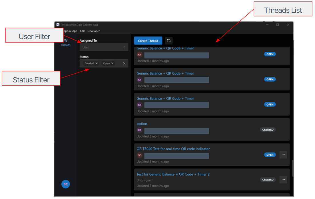 - Sign in to the Data Capture App. Your task list(s) appear as threads.