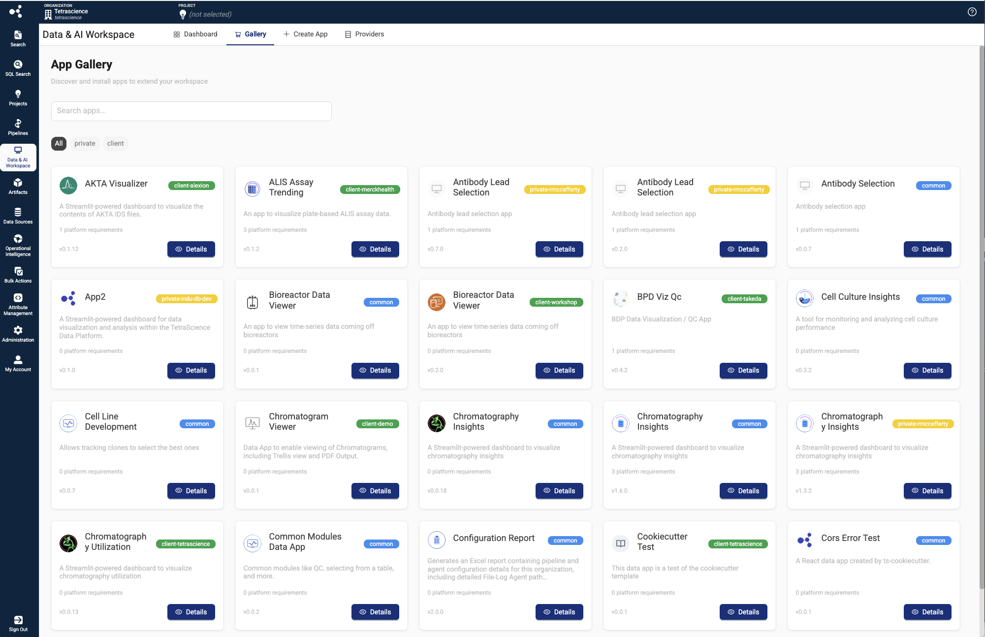 Users can access Embedded Data Apps through the Tetra Data & AI Workspace.