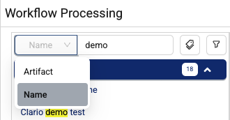 - To search for a pipeline by name, type the information in the upper left Search field. Select the drop-down menu to search for a specific pipeline by its name or artifact.