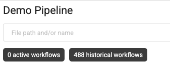 After you select a pipeline, its active and historical workflow counts are shown near the top of the screen.
