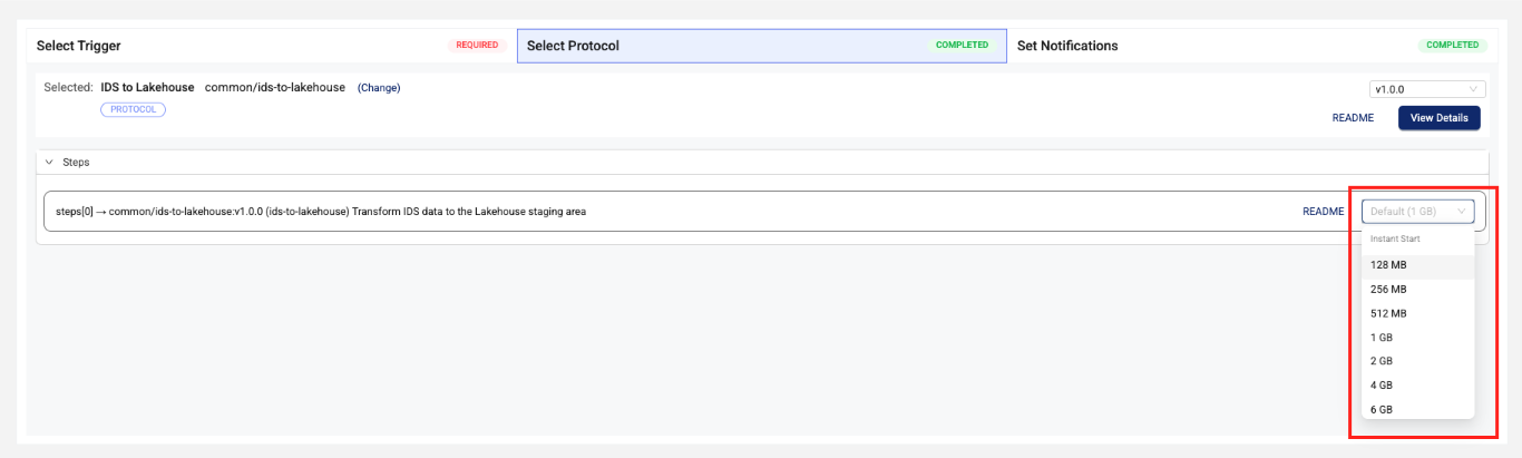 When configuring a protocol, you can override the default memory setting with a custom memory setting for each step of a pipeline.