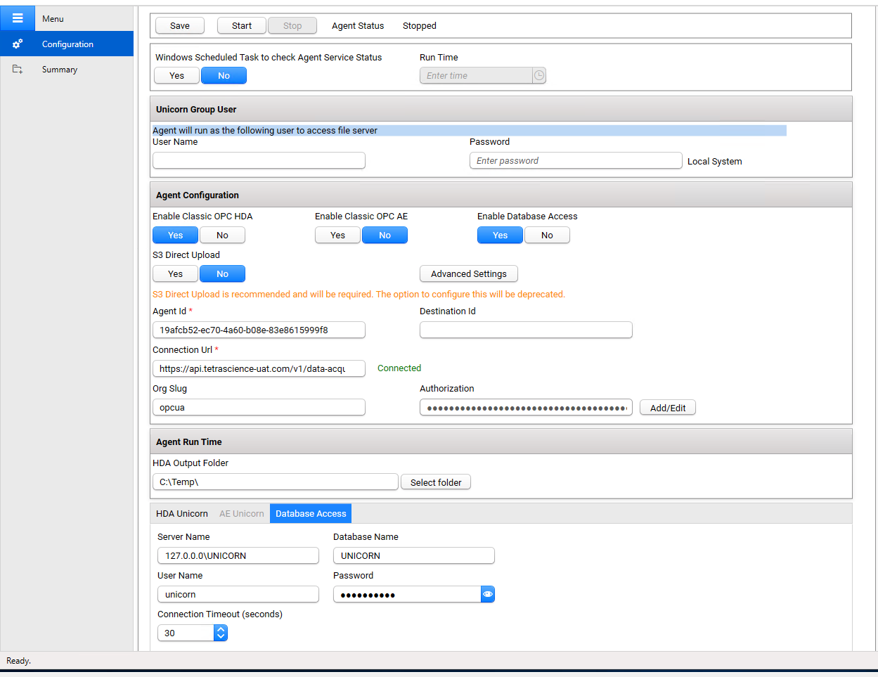 - Configure Database Access to connect the Agent directly to the UNICORN SQL Server database.