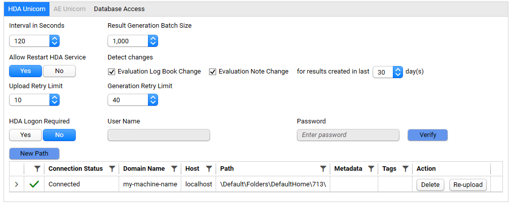 Dedicated User AccountWe recommend you use a dedicated local user account instead of using a normal user account with Evaluation Logbook change turned on to detect the Result File change. UNICORN domain user accounts aren't supported currently. You can configure HDA Logon Required for local user accounts only.
