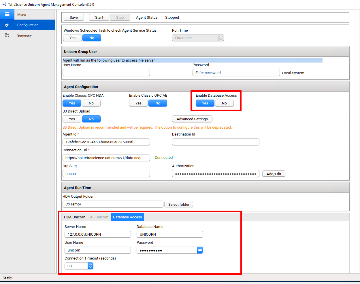 The Tetra UNICORN Agent Management Console now includes a Database Access configuration option that allows customers to enable or disable direct access to the UNICORN database. When database access is enabled, the Agent can query the UNICORN database directly to detect result files, improving detection efficiency.