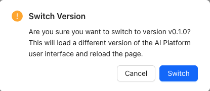 2. In the Page Version dropdown, select the latest AI Services UI page version. A dialog appears that asks you to confirm that you want to update the AI Services UI to the latest version.