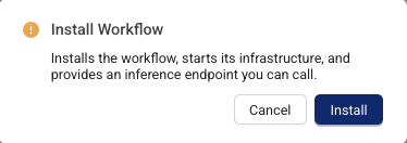 5. Choose Install Workflow. The Install Workflow dialog appears and prompts you to confirm that you want to install the workflow. Choose Install.