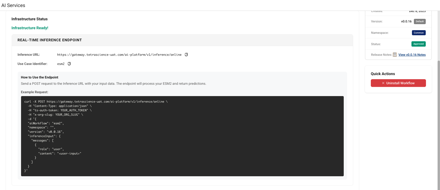 - Install a Scientific AI Workflow: Provision the required compute resources on-demand, resulting in an inference endpoint you can call programmatically .