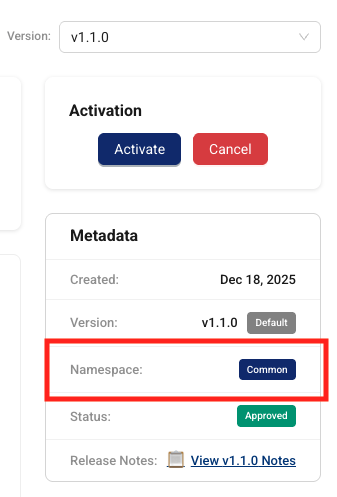 common and client Namespace Support for AI WorkflowsScientific AI Workflows now support common (shared) and client namespaces, allowing organizations to differentiate between which AI Workflows are specific to their org and those that are shared. Support for private namespace AI Workflows is scheduled for a future AI Services release.