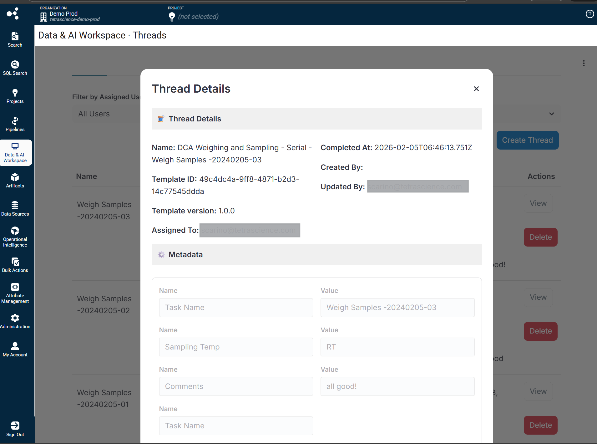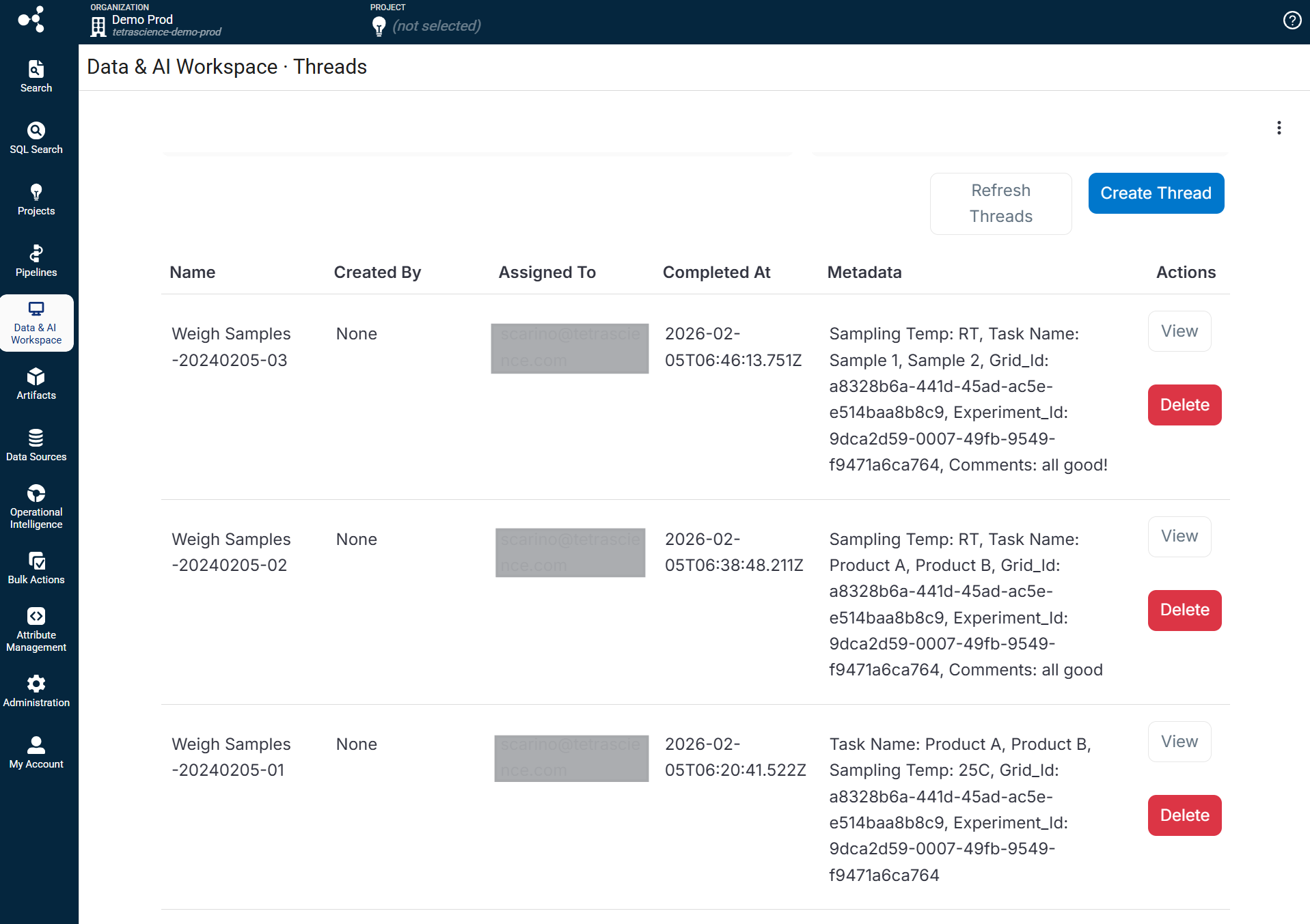 NOTEThe Threads App is available in beta release currently and is activated for customers through coordination with TetraScience. For more information, or to activate the app in your environment, contact your customer account leader.